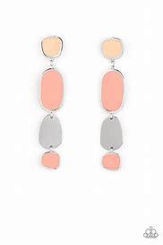 Painted in shiny Desert Mist and Burnt Coral finishes, asymmetrical frames attach to a single silver frame, creating an abstract lure. Earring attaches to a standard post fitting.