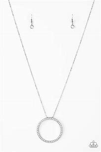 Encrusted in glittery white rhinestones, a dramatic silver hoop swings from the bottom of a lengthened silver chain for a refined look. Features an adjustable clasp closure.