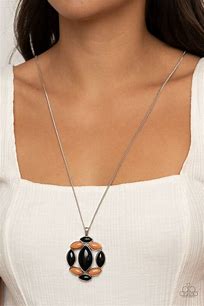 Featuring almond-like shapes, a cluster of polished black and brown beads delicately gather into a colorfully whimsical pendant at the bottom of a lengthened silver chain. Features an adjustable clasp closure.