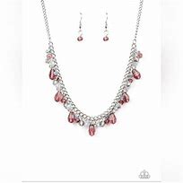 Featuring crystal-like and metallic opaque finishes, mismatched beading swings from a shimmery silver chain, creating a glamorous fringe below the collar. Features an adjustable clasp closure.