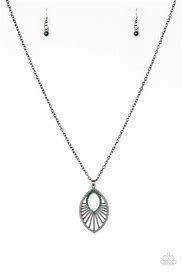 Radiating with studded gunmetal bars, a glistening marquise shaped frame swings from the bottom of an elongated gunmetal chain. Glittery green rhinestones adorn the frame, adding a refined flair to the regal pendant. Features an adjustable clasp closure.