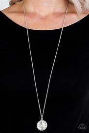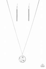 An oversized white gem swings from the bottom of a lengthened silver chain for a dramatic look. Features an adjustable clasp closure.