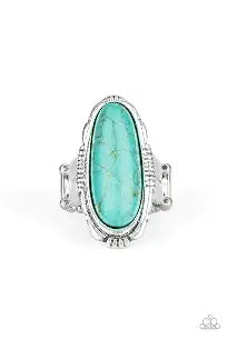 An oblong turquoise stone is pressed into the center of an ornate silver frame for a seasonal look. Features a stretchy band for a flexible fit. Sold as one individual ring.