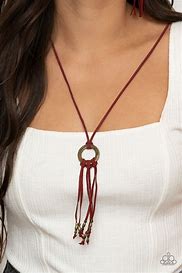 Infused with dainty brass beads, strands of Samba suede knot at the bottom of an antiqued brass ring, creating a colorfully rustic tassel at the bottom of a lengthened strand of Samba suede. Features an adjustable sliding bead closure.
