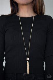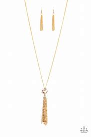 Infused with an elegantly elongated gold chain, a dramatic gem gives way to a shimmery gold chain tassel for a glamorous look. Features an adjustable clasp closure.