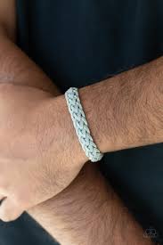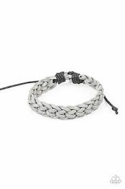 Rustic gray leather laces boldly weave around the wrist, creating a colorfully rugged centerpiece. Features an adjustable clasp closure.