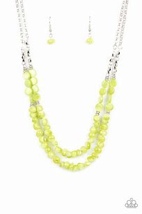 Infused with dainty silver cube and round beaded accents, green shell-like beads are threaded along invisible wires below the collar for a summery inspiration. Features an adjustable clasp closure.