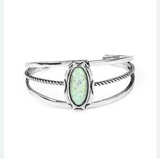 A glittery iridescent stone is pressed into a decorative silver frame atop a mismatched layered cuff, creating a seasonal sparkle around the wrist.