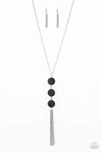 Sprinkled in glittery black prism style rhinestones, three sparkling silver frames trickle down the chest. A shimmery silver tassel swings from the bottom of the triple stacked pendant for a glamorous finish. Features an adjustable clasp closure.
