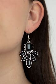 Featuring regal emerald, classic round, and tranquil teardrop shapes, a faceted collection of black rhinestones coalesce into a glamorous frame. Earring attaches to a standard fishhook fitting.