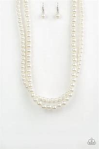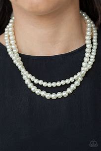 Two strands of classic white pearls are strung along invisible wires below the collar. Each strand slightly varies in size, adding a modern twist to the timeless pearl palette. Features an adjustable clasp closure.